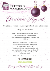 Thank you so much for donating to St Peter’s and St Paul’s Marlborough Trust. Your support is helping us to raise vital funds in order to preserve this building of significant historic interest and to provide a centre for the community to explore its history and enjoy its space.